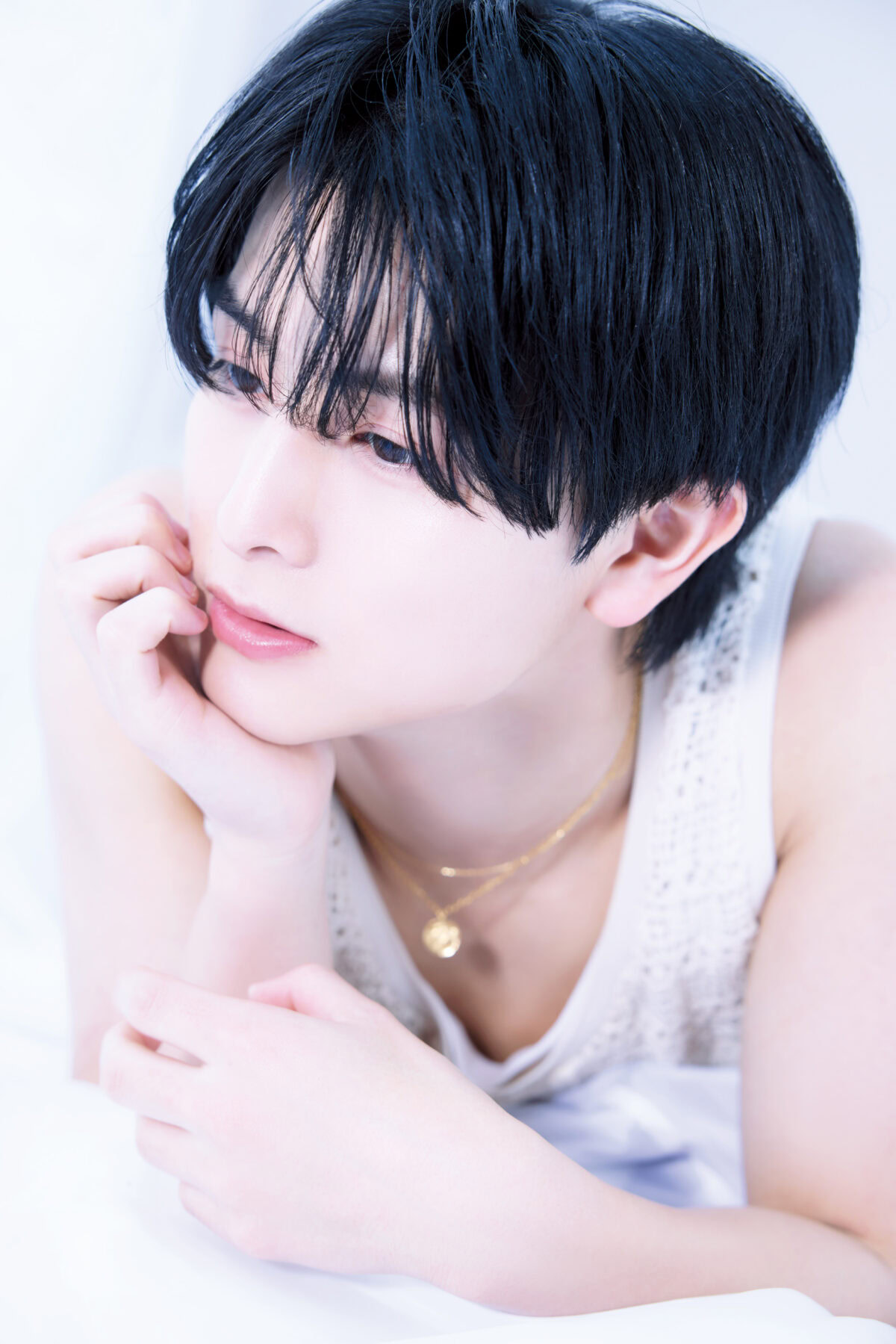 シャツ ¥24,200(アモーメント) チェーンネックレス ¥95,700、チャーム付ネックレス ¥23,100(ともにマリハ) その他(スタイリスト私物)