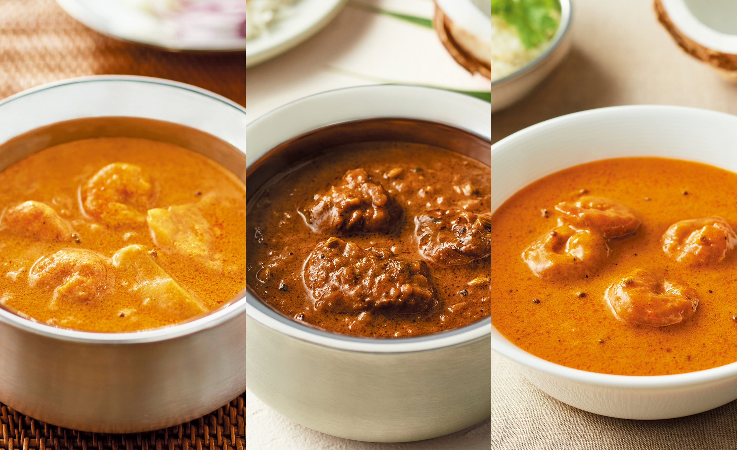 インドの西海岸にあるゴア州発祥。白ワインビネガーの酸味、スパイスの香りと辛味、豚肉の旨味をバランスよく合わせたミニサイズのレトルトカレー。「ごはんによく合います!」(高橋さん)