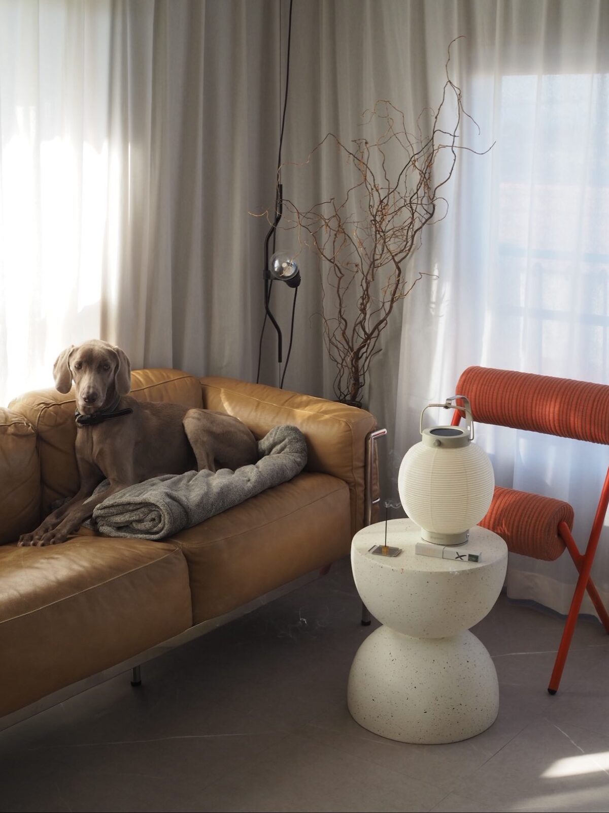 「限定発売されたときに購入した〈倉俣史朗〉の通称・オバQのミニライトは、ハンカチを手に持ったようなフォルムがたまりません。置くだけでアートとしても存在してくれます。京都府祇園の〈T.T〉のお香と、別注の〈福村龍太〉さんのお香立てもリラックスタイムに活躍。庭の朝顔をすべて摘み、茶室に一輪だけ生けたという千利休のエピソードにちなんだという香りをとても気に入っています」