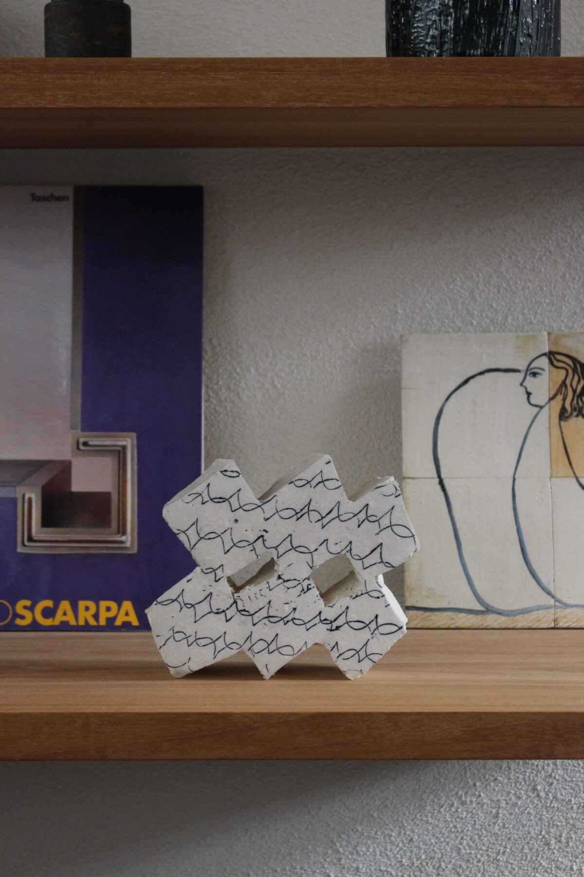 「岐阜県多治見市の新町ビル4階にある地想で、店主の私物として飾られていた〈浅井万貴子〉さんのセラミックオブジェ。スタッフとして働く妻がずっと好きな作家さんで、第一子の出産祝に譲り受けた、思い入れ深いものです。いびつな形といびつな模様がなんとも愛らしく、大切にしています」