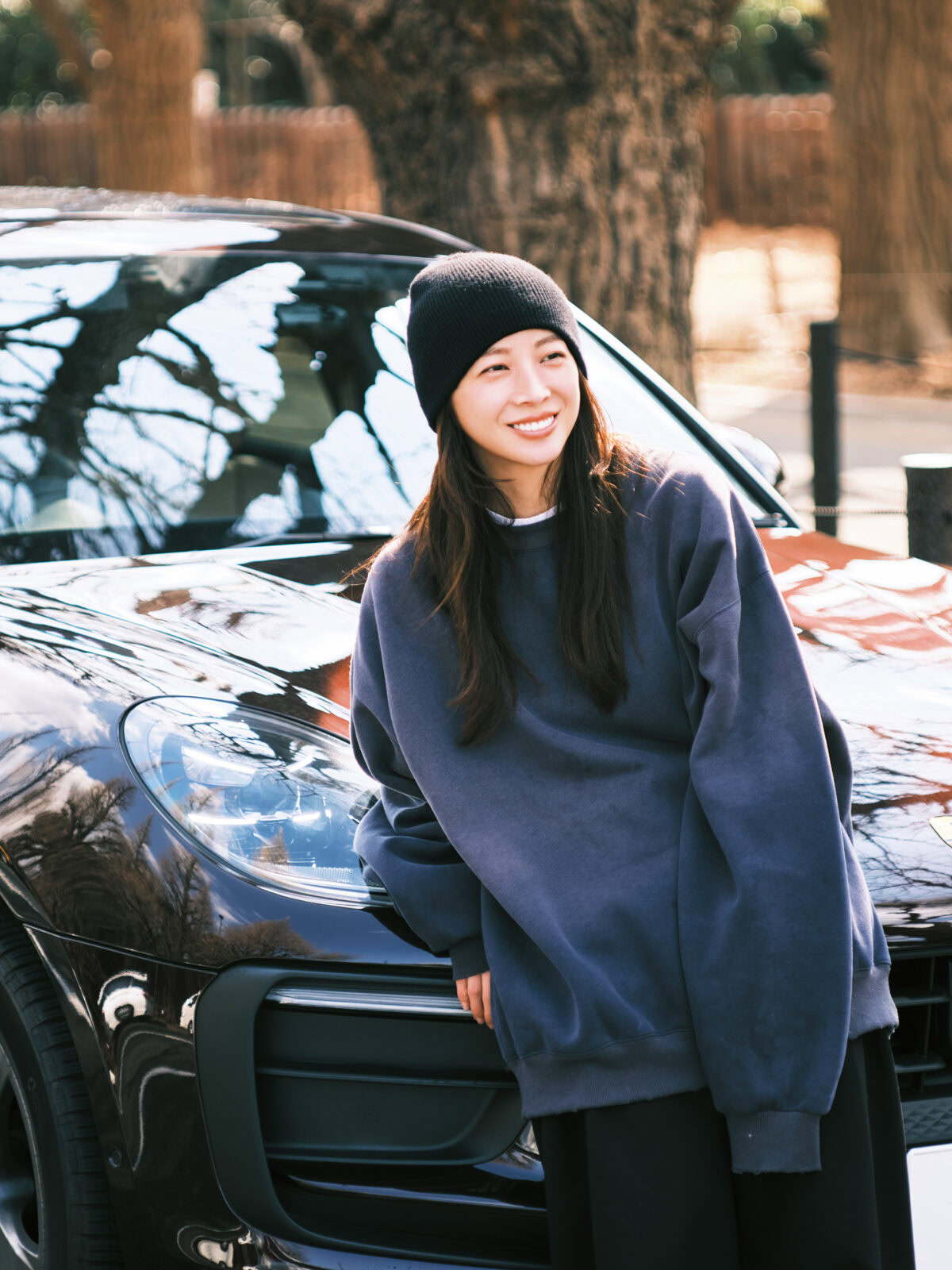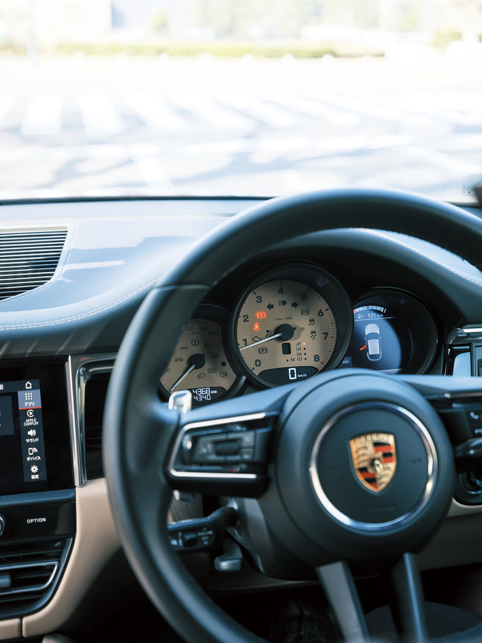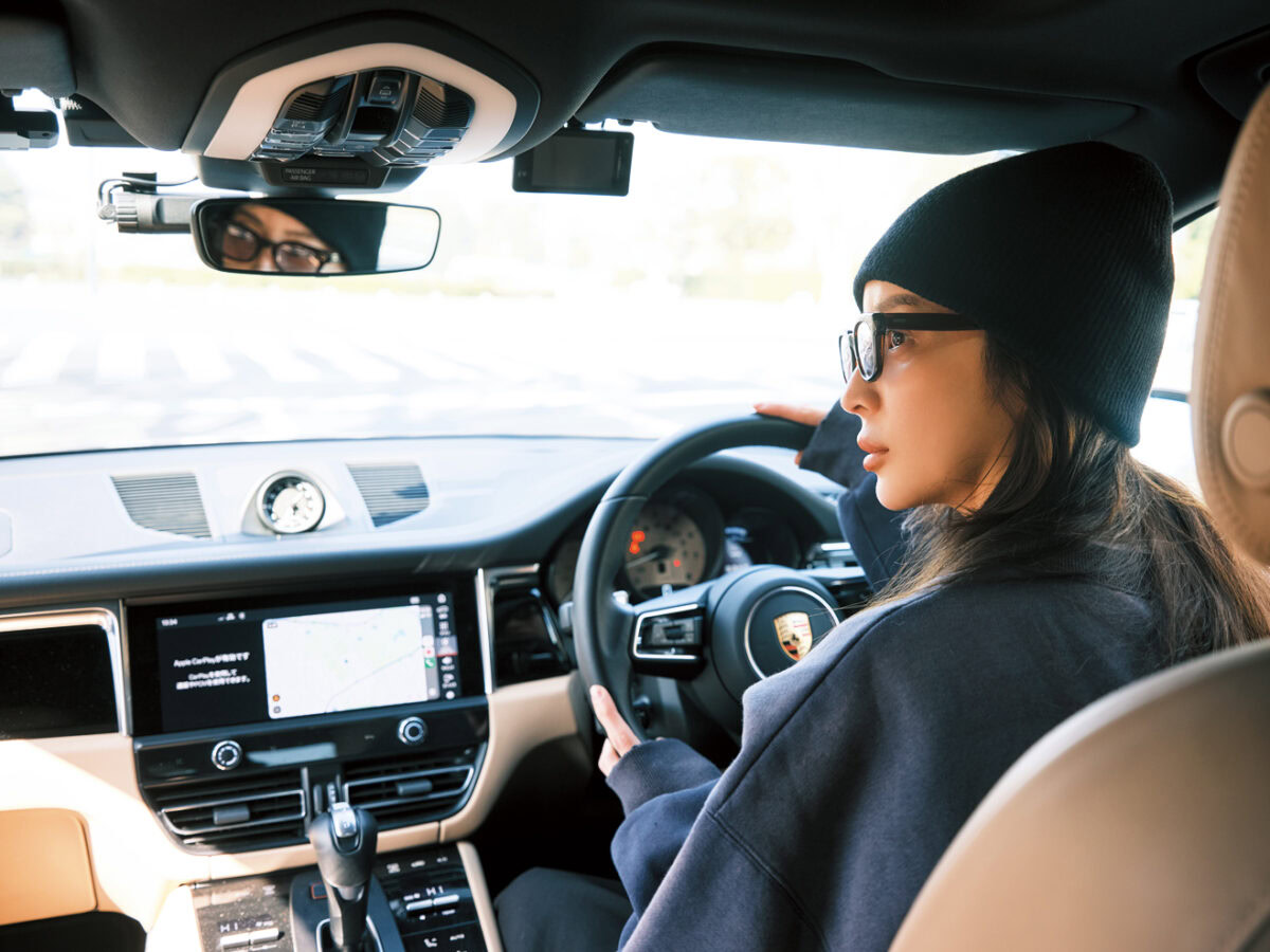 所有するものすべてにセンスが光る! でおなじみ、吉田怜香さんが選んだ車はコンパクトSUVの「ポルシェ マカン」。「 はじめて買った84年式の『メルセデス・ベンツ W123 280E』は、それ目当てで免許を取ってしまうほど気に入っていたんですが、やはり古い車なので初心者には扱いが難しく。子どももいるし実用性を考えて乗り換えました。ただ、元々古い車が好きなため、新車を選ぶのが難しくて。ウェブサイトのシミュレーションでふと見つけたこの深めのボルドー色なら自分らしいかもと思い、購入を決めました。ギラギラさせたくはなくて“ポルシェ感”を出来るだけ控えめになるよう、エンブレムをなくしたり、ミュートカラーにカスタムしました。好きな音楽を聴きながら、娘も連れて夜の首都高をドライブしたり、車がある生活は楽しいです」