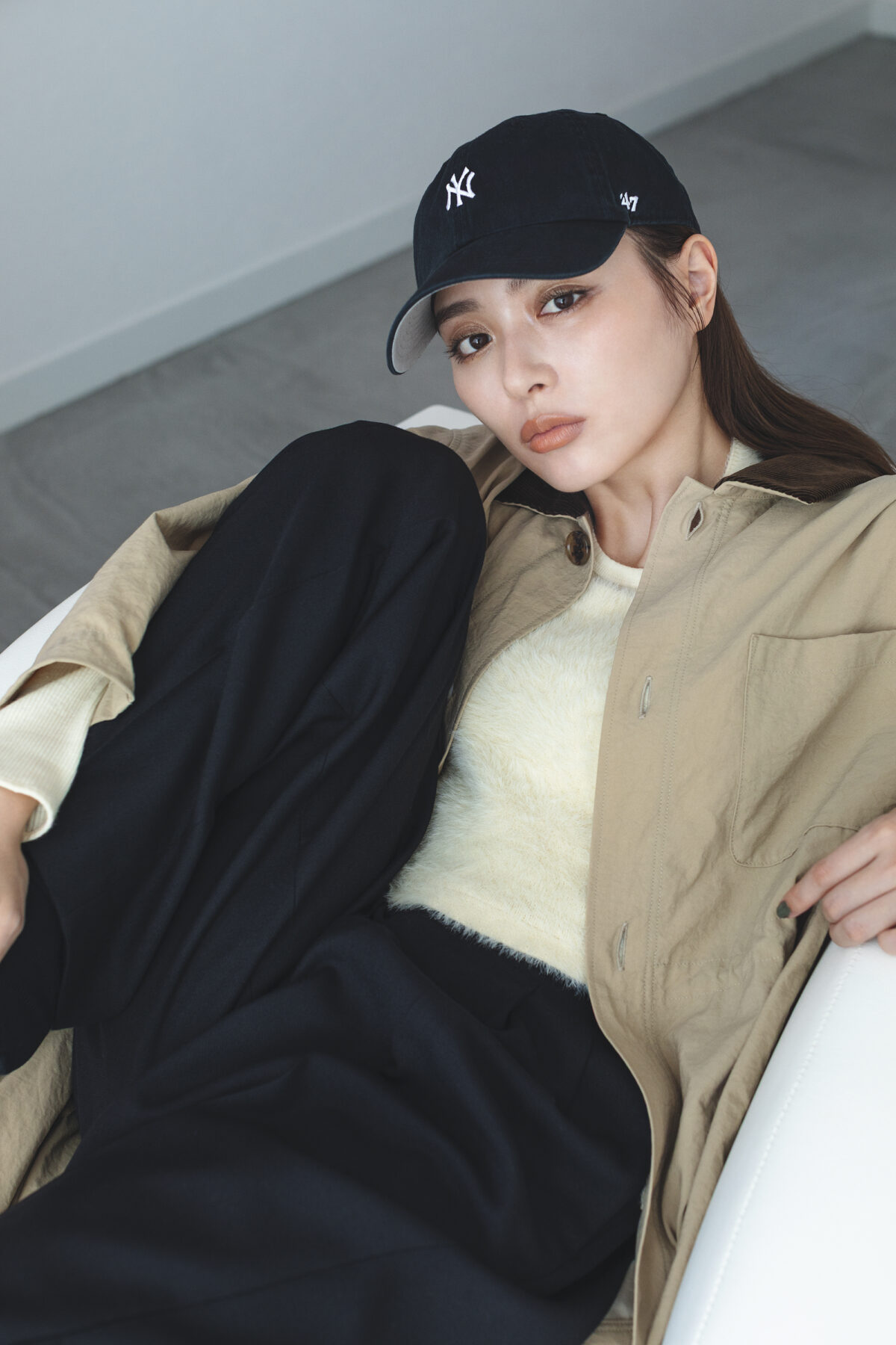 サッと被るだけで装いがこなれるベースボールキャップが今、お洒落な人のワードローブに浸透中。メジャーリーグ所属チームのロゴを洒落たムードでまとえる’47(フォーティーセブン)を相棒に、女優・内田理央さんがクラシックモダンな装いを披露します。