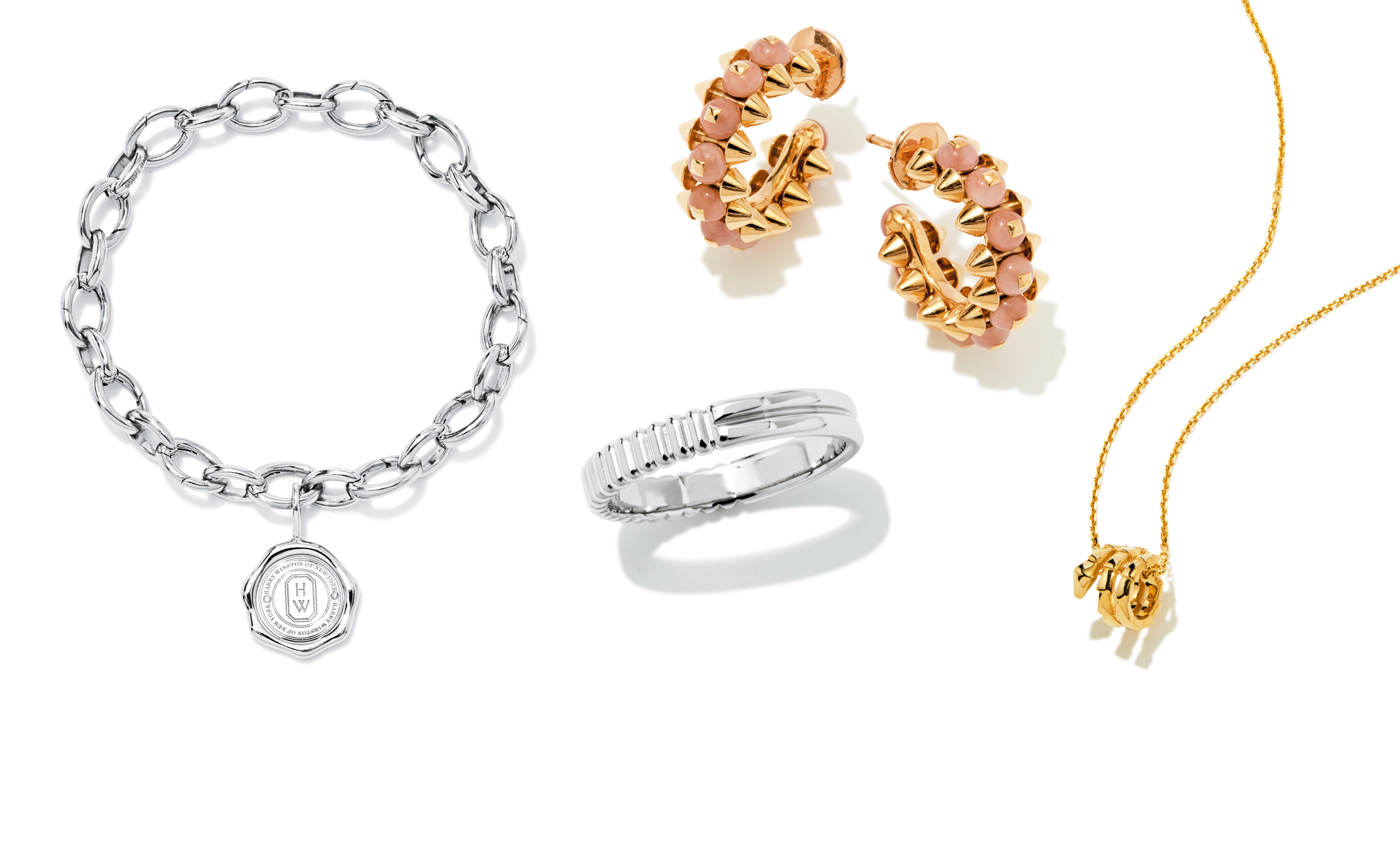 ブレスレット¥1,177,000[Pt]、チャーム¥561,000[Pt×DIA](ともにハリー・ウィンストン/ハリー・ウィンストン クライアントインフォメーション)